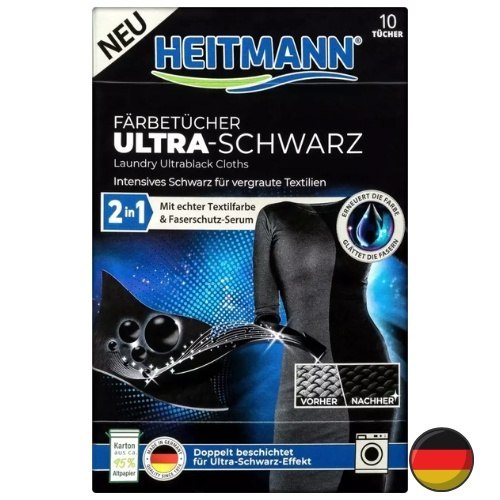 Heitmann Chusteczki do Prania Czarnego Przywracające Czerń 10 szt. (Niemcy)